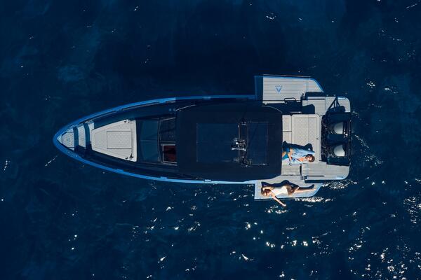 For environmentally conscious boaters, the V10 T-Top offers an optional Evoy electric propulsion system, delivering a top speed of 37 knots and a range of up to 60 nautical miles at 25 knots. Solar panels integrated into the T-top support onboard systems, reducing your carbon footprint while maintaining high performance.