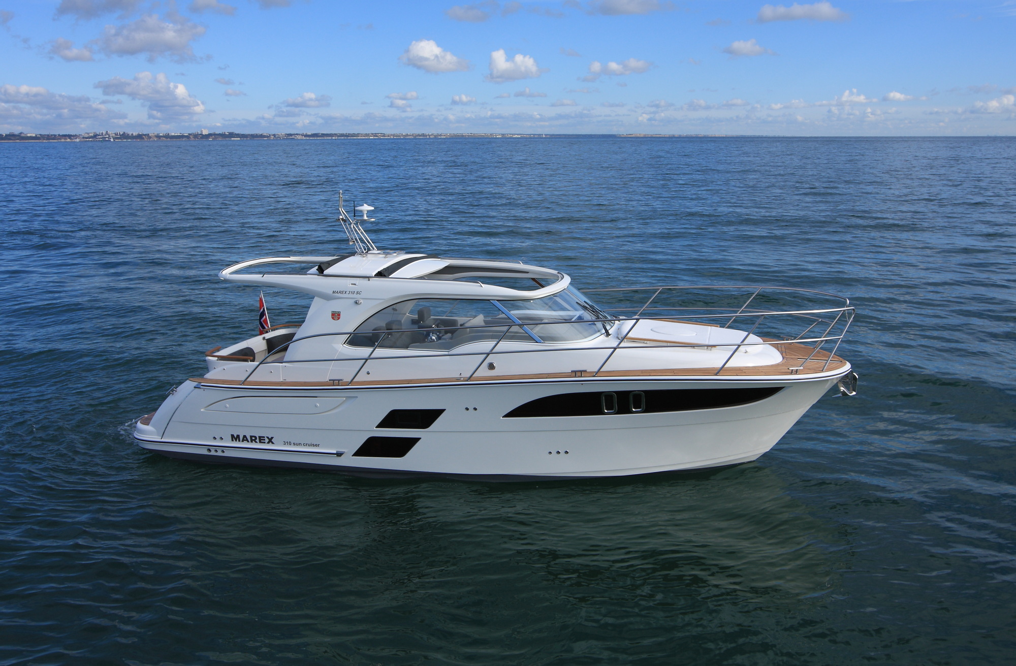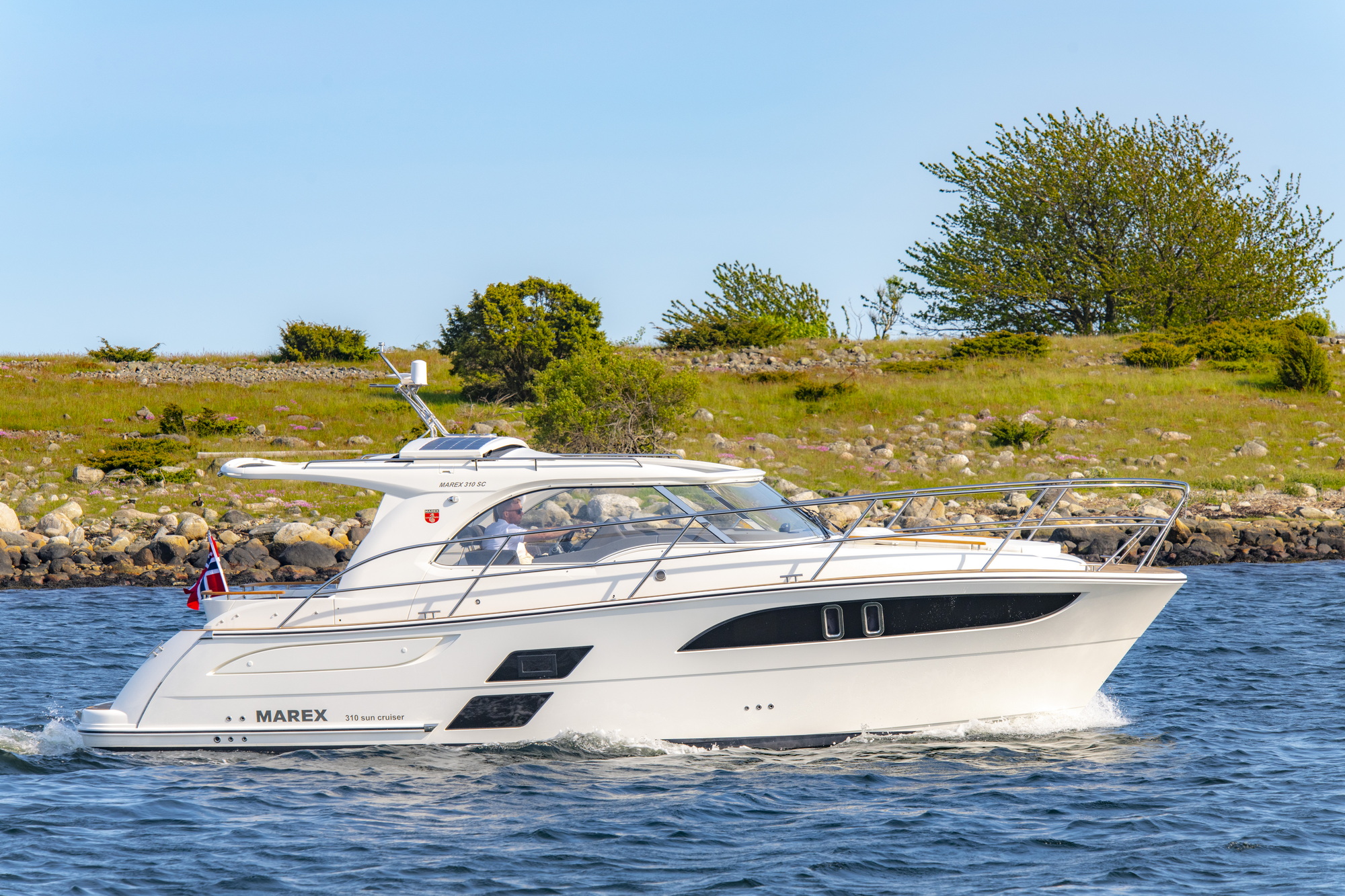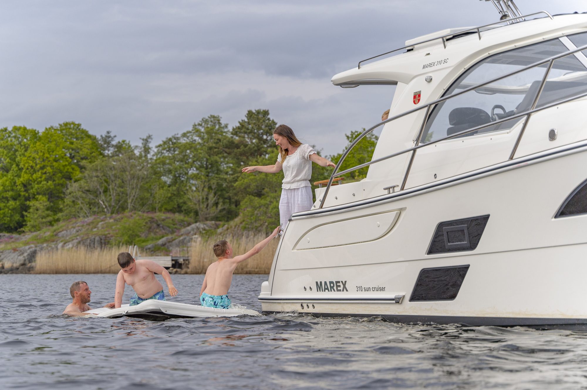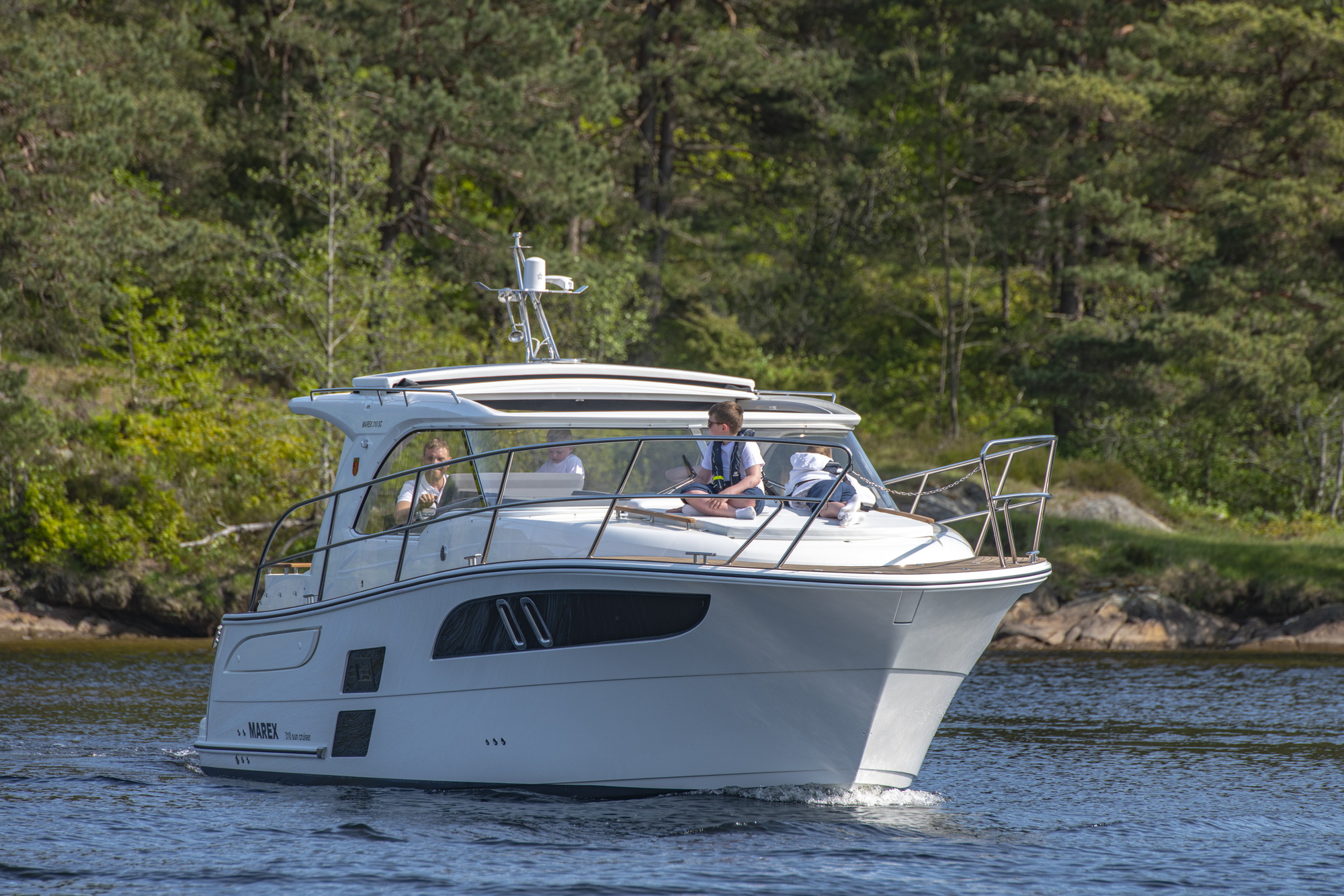 Marex 310 Sun Cruiser is an elegant and innovative 31-foot boat fashioned on current trends and customer needs. The 310 Sun Cruiser mixes a classic hull style with a sports spirit, rounded bow and smooth profile lines. Being the smallest in the Marex range, it is the perfect Cabin Cruiser for four guests, designed to deliver the ideal combination of comfort and space for families and friends. The concept Marex is a family shipyard, so the customers' wishes are revered here. Already in its 5th generation, the famous 310 line embodies the cruiser concept in the best possible way. The Marex 310 Sun Cruiser has won many awards, including Motorboat of the Year, European Powerboat of the Year and the German Design Award for its design, functionality and safety. Judges were impressed by Marex’s clever storage systems, where each centimetre has a practical purpose. Swim platform The first stylish solutions to be experienced by guests are the practical swim platform benches. These are set to become your favourite place to relax on sunny days. Storage lockers beneath them can also be used to keep fishing, scuba gear, mooring equipment, etc.
