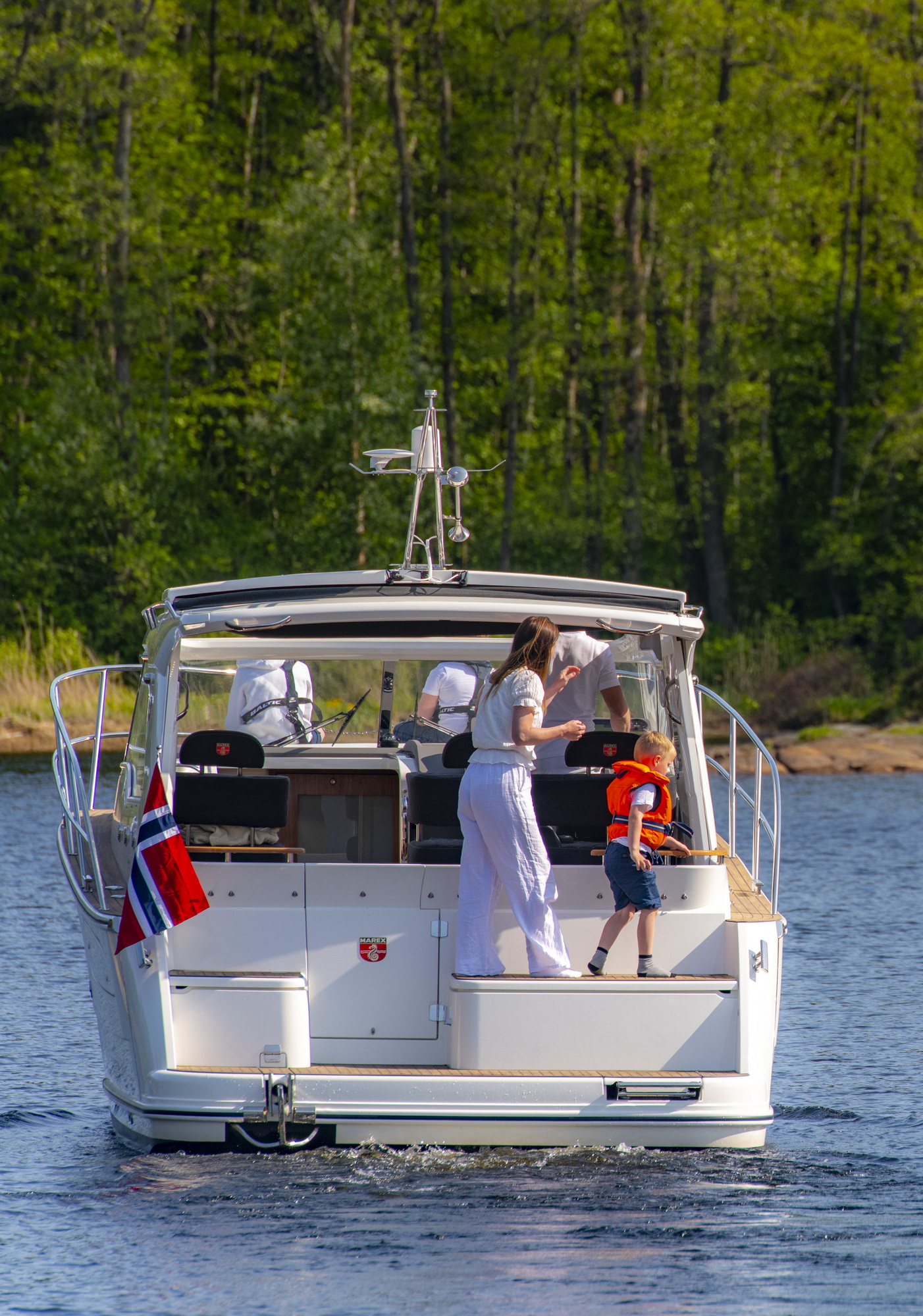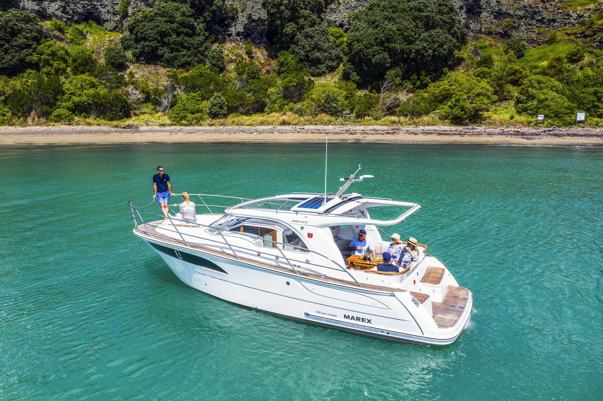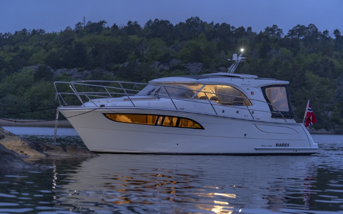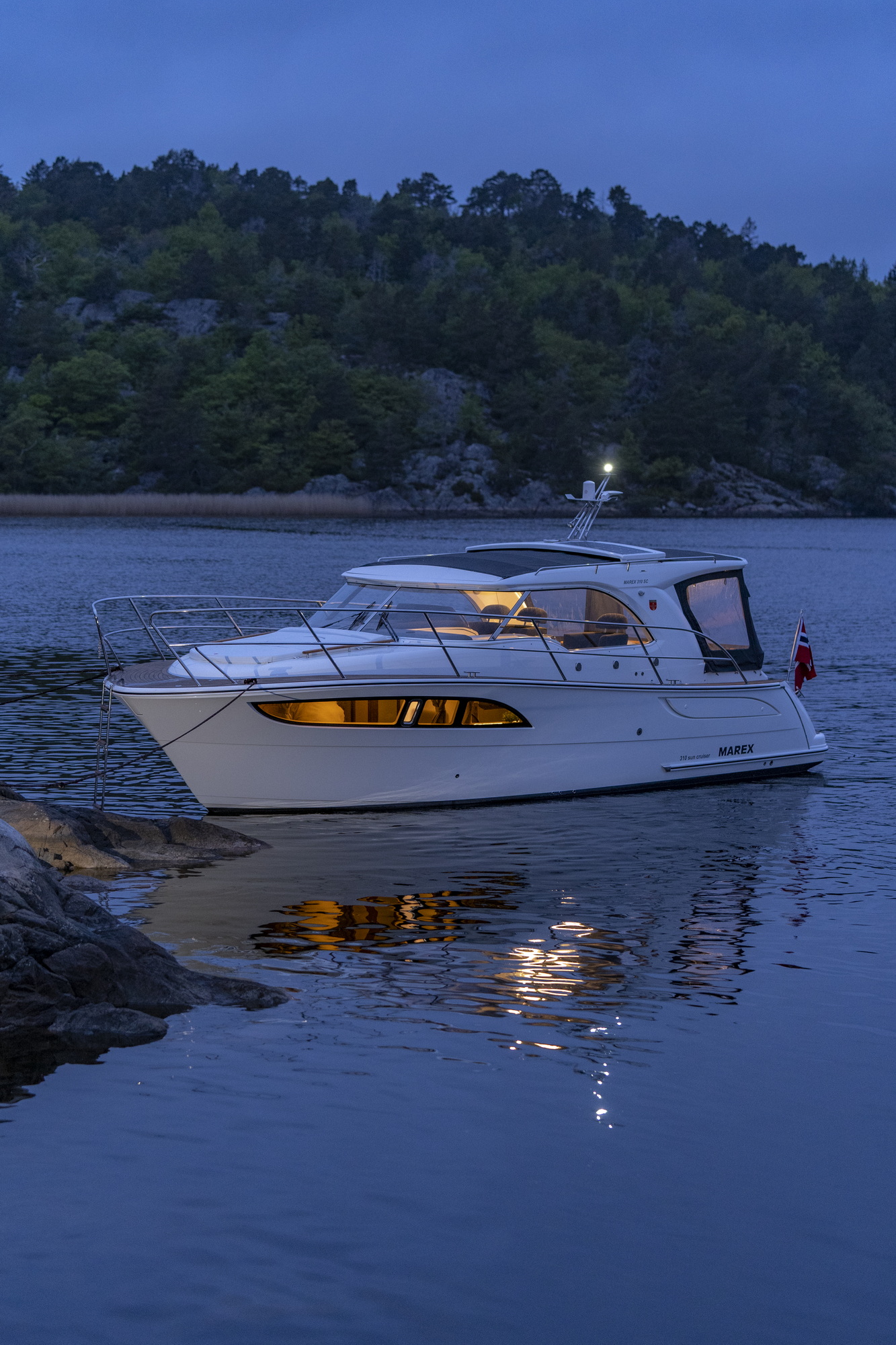 Marex 310 Sun Cruiser is an elegant and innovative 31-foot boat fashioned on current trends and customer needs. The 310 Sun Cruiser mixes a classic hull style with a sports spirit, rounded bow and smooth profile lines. Being the smallest in the Marex range, it is the perfect Cabin Cruiser for four guests, designed to deliver the ideal combination of comfort and space for families and friends. The concept Marex is a family shipyard, so the customers' wishes are revered here. Already in its 5th generation, the famous 310 line embodies the cruiser concept in the best possible way. The Marex 310 Sun Cruiser has won many awards, including Motorboat of the Year, European Powerboat of the Year and the German Design Award for its design, functionality and safety. Judges were impressed by Marex’s clever storage systems, where each centimetre has a practical purpose. Swim platform The first stylish solutions to be experienced by guests are the practical swim platform benches. These are set to become your favourite place to relax on sunny days. Storage lockers beneath them can also be used to keep fishing, scuba gear, mooring equipment, etc.
