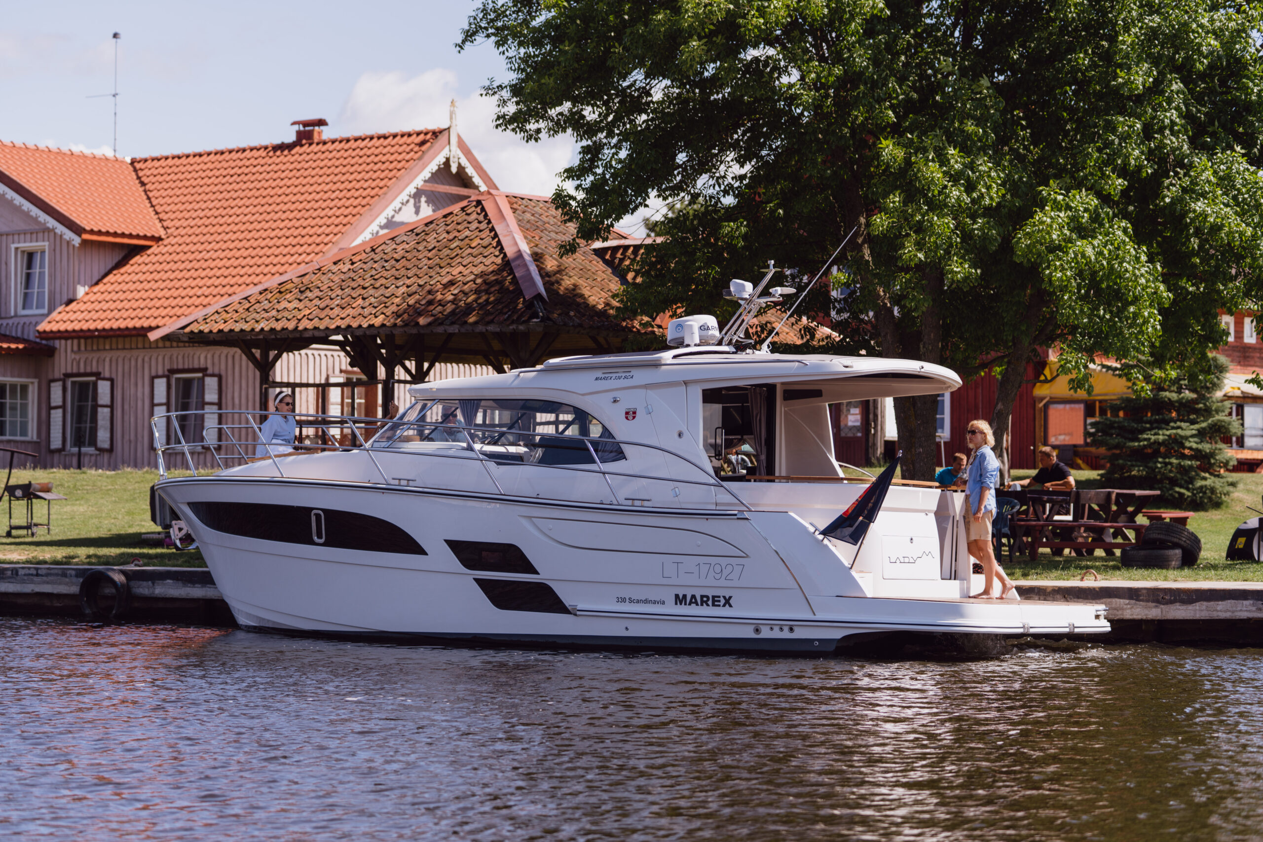 The Marex 330 Scandinavia combines practicality, functionality, ergonomics, and modern lines. It provides excellent performance and smart solutions that guarantee an extraordinary experience on the water. Social activity Marex 330 Scandinavia was created by shipyard in-house designers, the engineering department and the Slovenian design studio Nikl Design. These close-knit teams have successfully cooperated on all Marex projects for over ten years, and they deeply understand the shipyard's philosophy. Thanks to this, the 330 Scandinavia features spacious outside and inside sitting areas. At the same time, a sliding door between the cockpit and salon makes the boat suitable for various social settings and an absolute pleasure to cruise in.