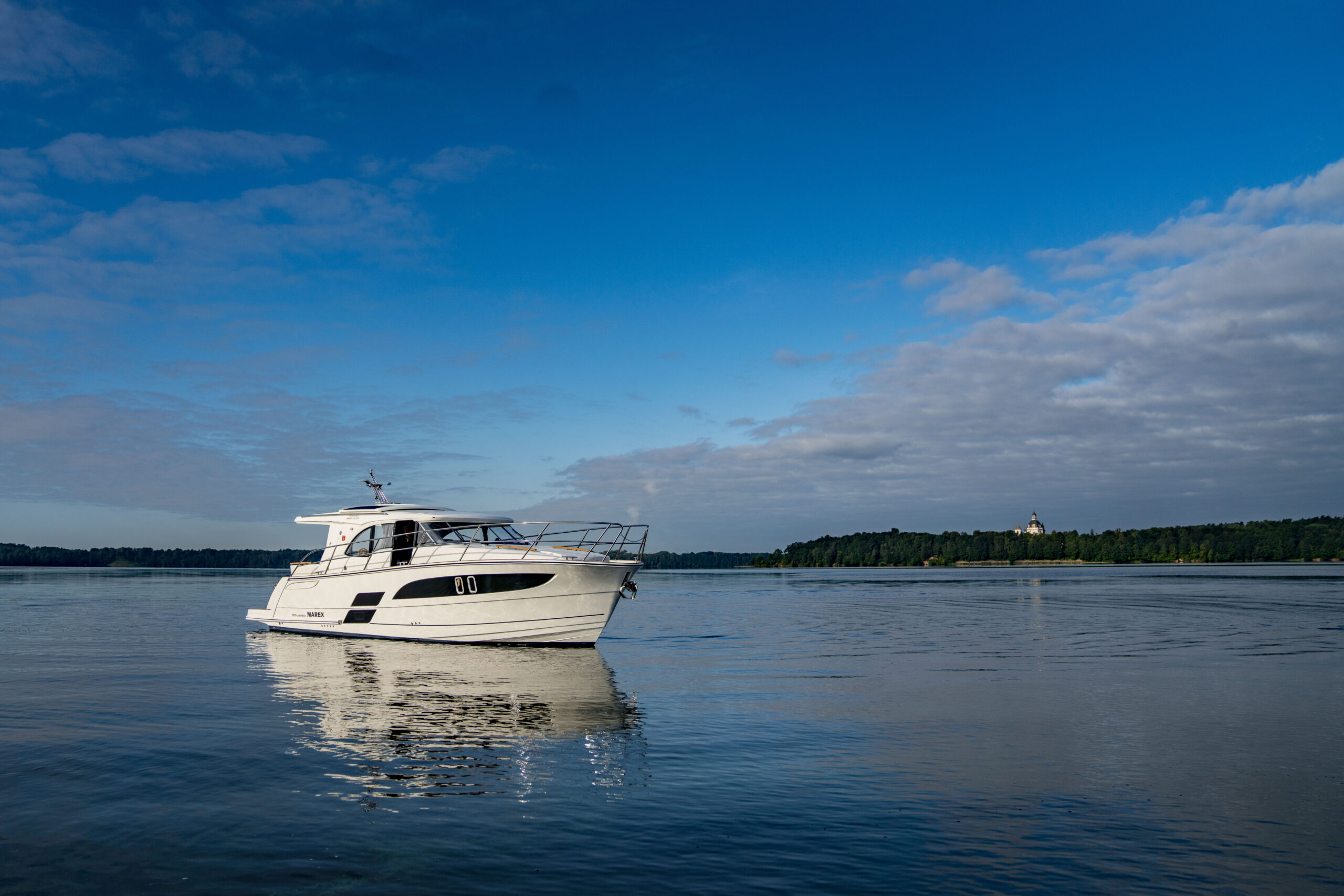 The 330 Scandinavia demonstrates Marex quality interior design in all its splendour and has every amenity needed for a small family to spend the weekend on the water. There are two cabins on the lower deck and also four additional sleeping places in the salon and cockpit. The forward cabin in the bow makes the most of the available space with a large double bed and a bedside sofa, while the ceiling height reaches almost 6.5 Ft. The midship cabin features a big double bed of 6.5 x 5.2 Ft., and all the spaces on the lower deck are flooded with light thanks to large portholes. The Marex 330 Scandinavia is a prime example of a family cruiser that can conquer everyone with its attention to detail and dedication to quality.