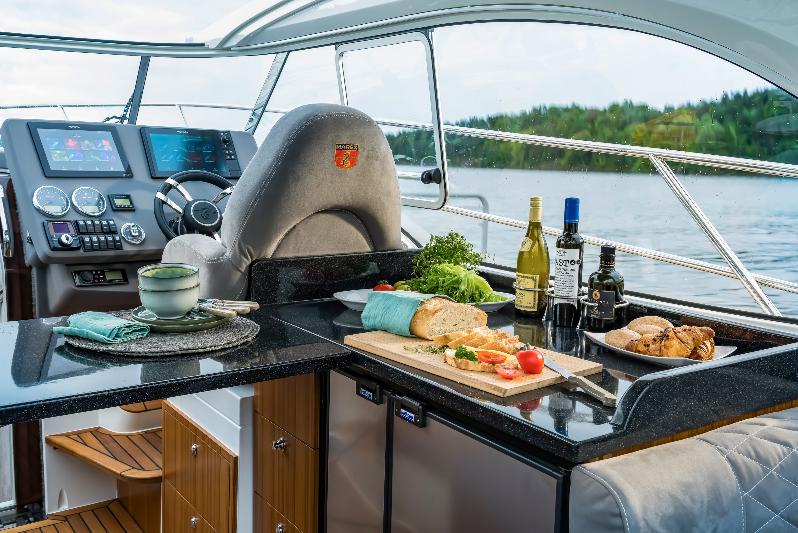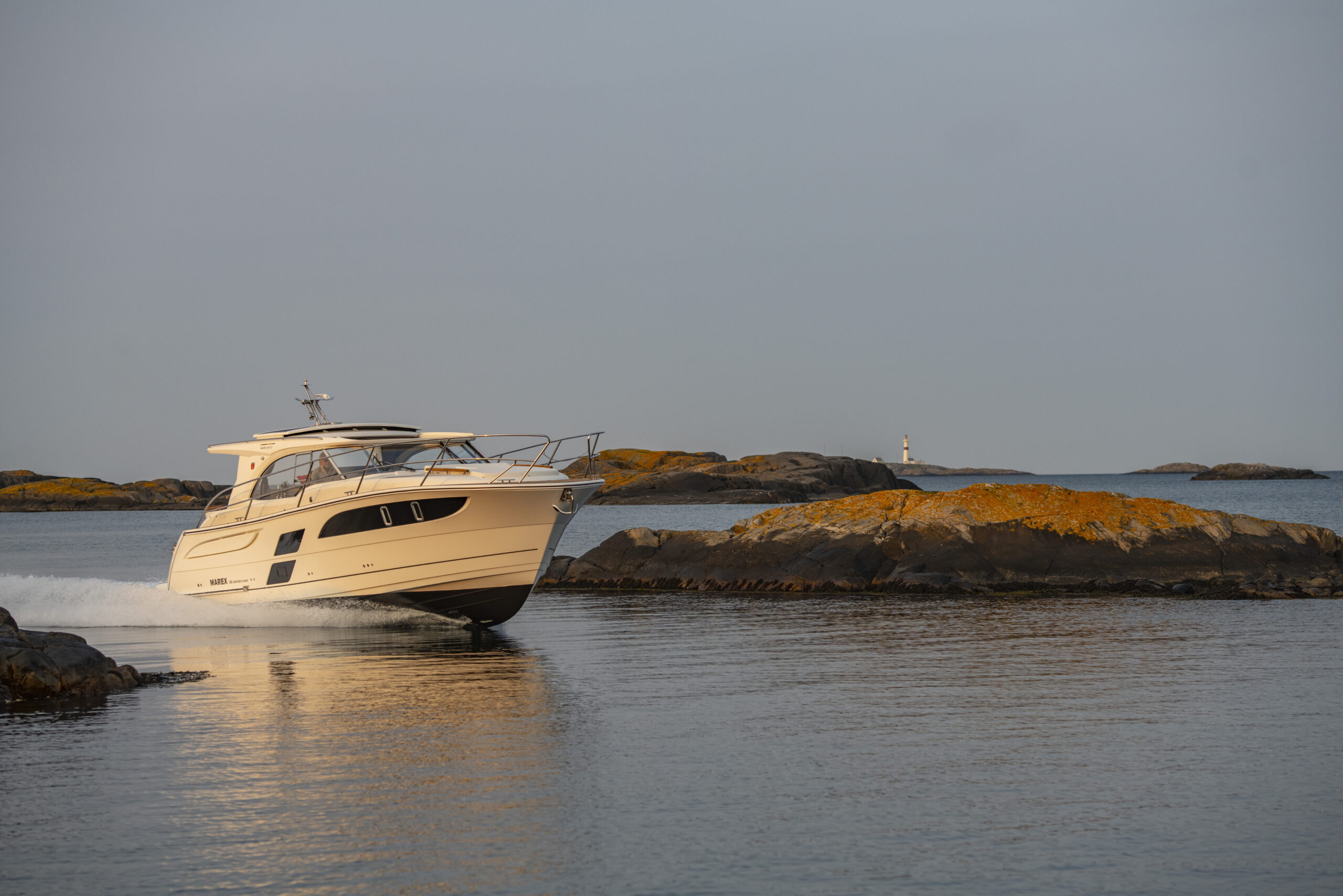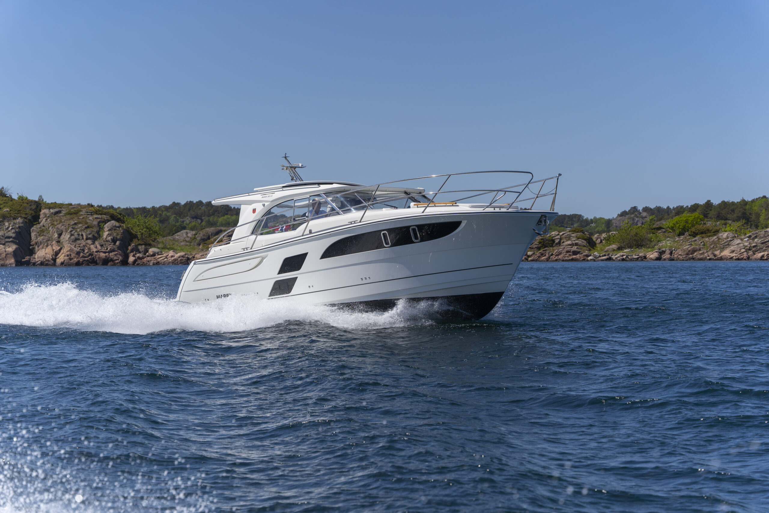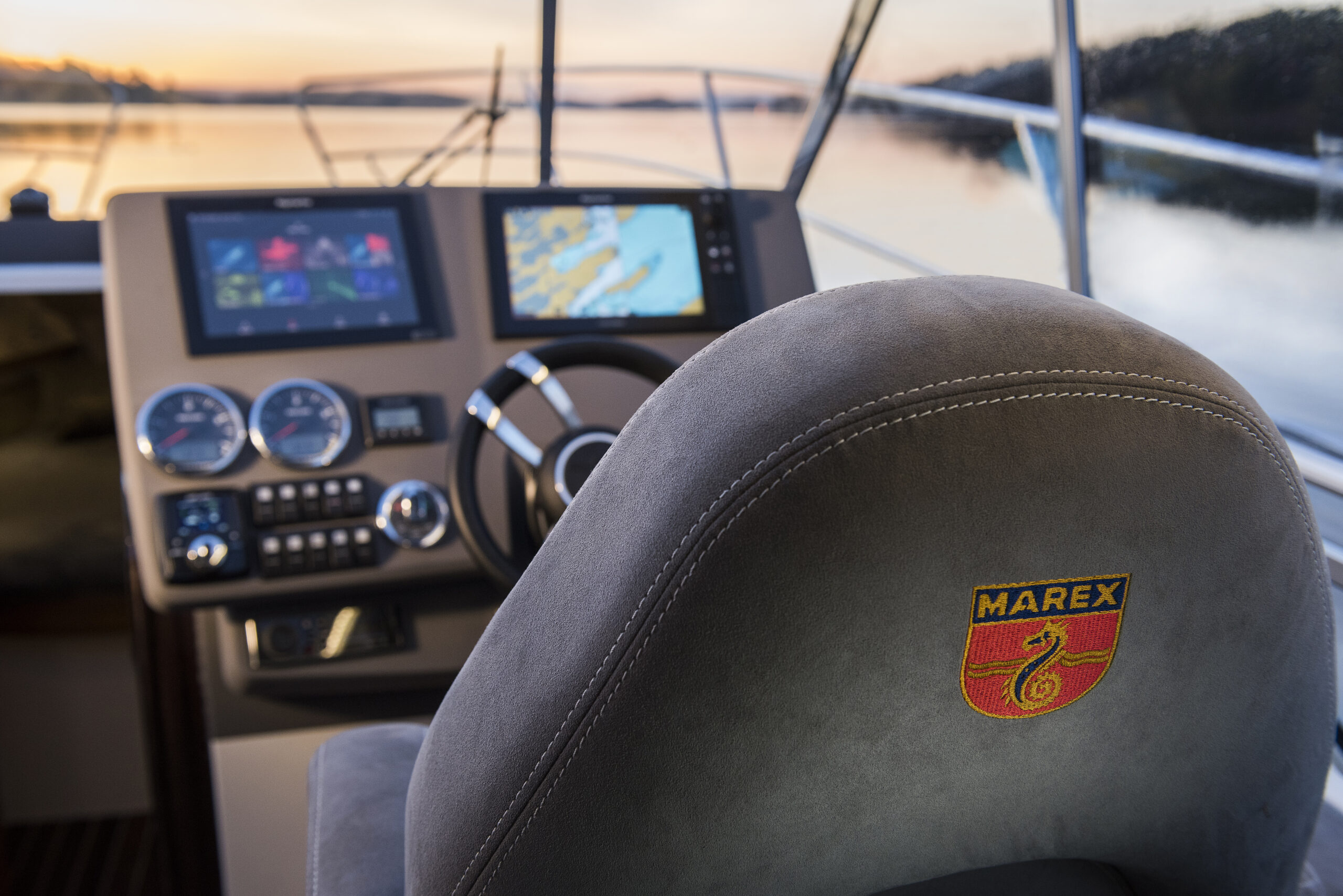 Skipper-friendly ergonomics are part of Marex DNA. All the instrumentation, two 12’ chartplotters, switchgear and anti-reflective finishes guarantee safe cruising while the spacious triple co-pilot seat assures an exciting experience for the whole family. Marex offers several motorisation options: a single Volvo Penta D6 with 440 HP, capable of accelerating the boat to 31 knots, and a paired Volvo Penta D4 of 300 HP, which increases the maximum speed to 40 knots. Alternatives are two Mercury Diesels, or Yanmars, with outputs of 260 or 320 HP.