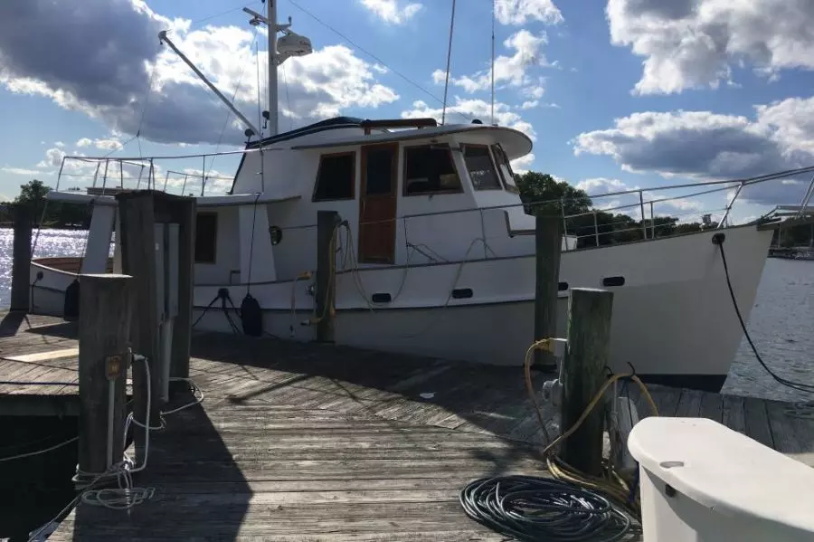 Stout long range pilothouse cruiser designed for offshore voyaging. Single Ford Lehman diesel and 700 gallon fuel capacity yields around 2000 mile range at 8 knots. Ballasted keel, 360 gallon water capacity. Beautiful teak interior gets you there in comfort and style.