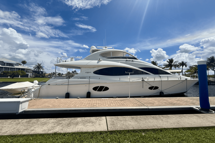 New listing, rare resale of 68’ Lazzara that has added hydraulic platform making her virtually a 74’ Lazzara without