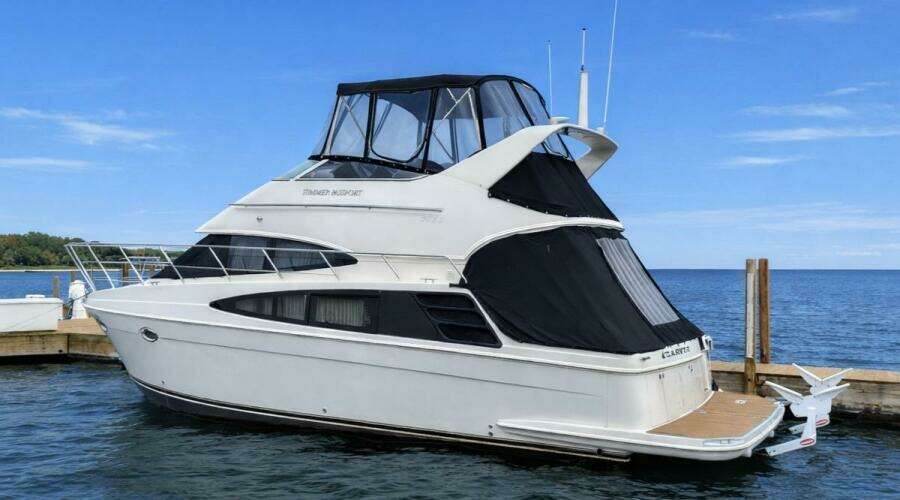 The Carver 360 Sport Sedan, called the 36 Sedan in 2005–07, was tasked with packing as much living space as possible and in that regard, she achieved her purpose. Sporting a full-size cockpit and a large swim platform, the 360 Sport Sedan is a versatile cruising yacht who's expansive two-stateroom interior is her most appealing feature. The main cabin is arranged with a unique raised dinette or lounge forward with a perfect amount of seating, and all bulkheads, counters, drawers and furniture are high-gloss cherry wood. A curved staircase below the dinette leads down to the aft guest stateroom with convertible twin berths, and the forward stateroom with an island berth. The hard flooring in the galley and salon area is a nice feature, and the tiered windows admit plenty of natural lighting into the salon that makes it great for those not interested in the cabins of express models. Getting around the Sport Sedan is easy: in each forward corner of the cockpit, a five-step stairway leads to the raised side decks while an additional staircase takes you to the bridge. Topside, the helm is on the centerline sided by companion seats. Upgraded sound system and TV entertainment gives this Carver the edge. Powered with twin 8.1volvos with 375HP each. You won't find a cleaner and better equipped model in the Great Lakes.