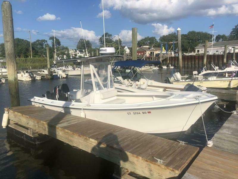 2009 Steiger Craft 21 Long Beach center console with T-top powered by a Suzuki 175, Simrad electronics and Vantage tandem axle trailer.